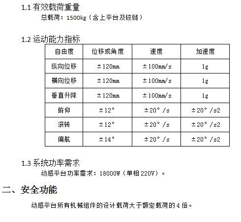 1.3系統(tǒng)功率需求:動(dòng)感平臺(tái)功率需求:1800w(單相220v)